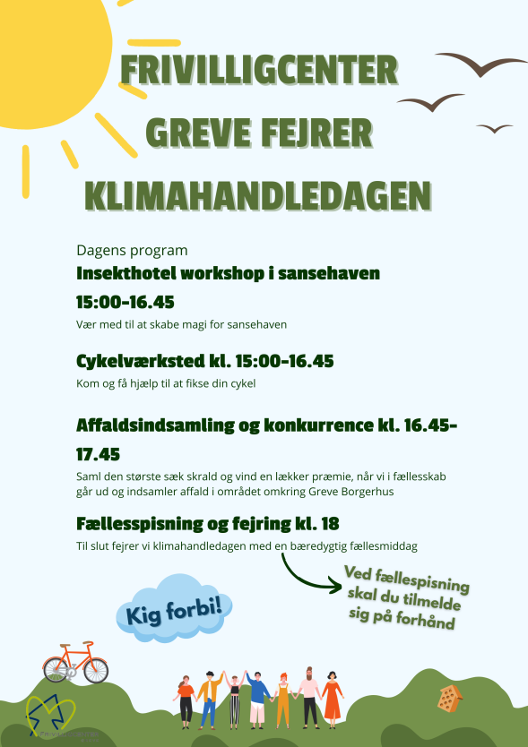 Vi afslutter dagen med et 🥗 grønt fællesmåltid, og alle er velkomne til alle aktiviteter.